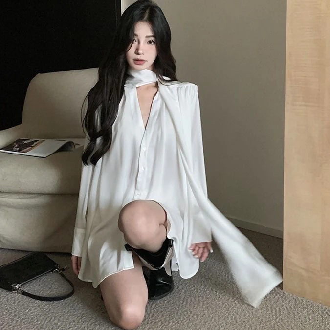 The mid-length cut adds a modern twist to the classic shirt dress, making it a versatile piece in your wardrobe.